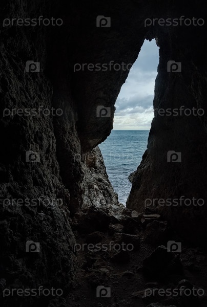 Через пещеру на мысе Капчик с видом на волны Черного моря