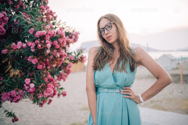 Элегантная женщина позирует с розовыми цветами на улице