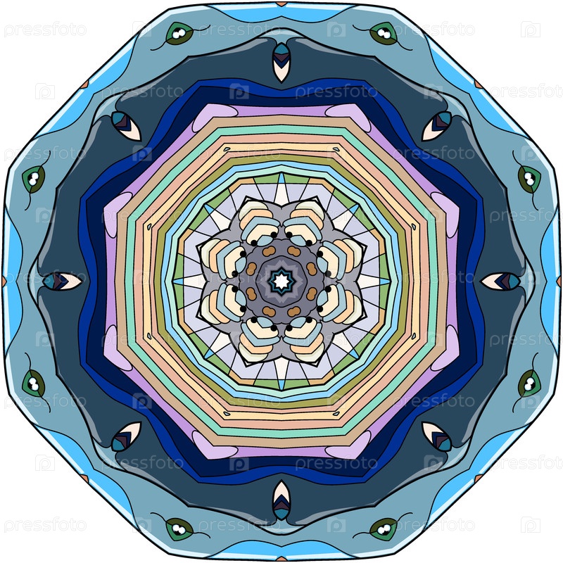 Декоративный круглый орнамент. Необычная форма цветка. Восточный вектор, режимы антистрессовой терапии. Плетение элементов дизайна вместе. Логотипы йоги Вектор