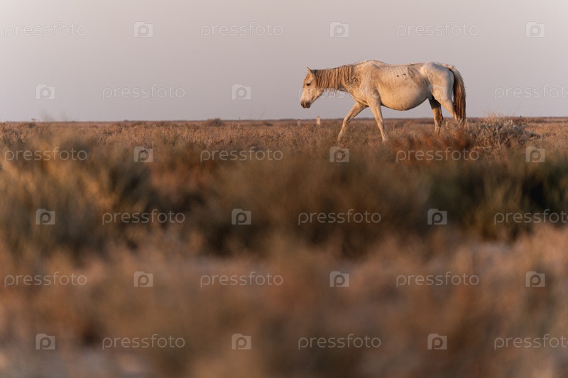 Беременная лошадь, идущая по степи