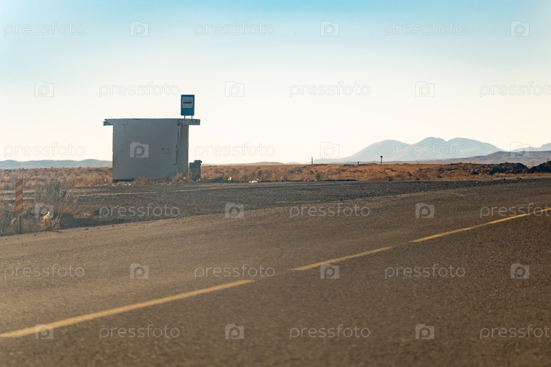 Одинокая остановка в степи на фоне гор