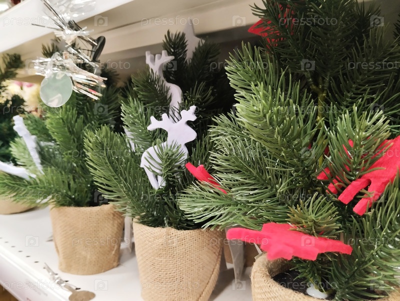 Маленькие обеденные деревья с игрушками. Символы Рождества и Нового года. Приборы на новогоднюю ночь для продажи