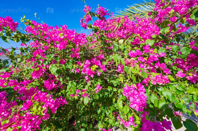 Ярко-розовый бугенвильец Цветы в полном цветении