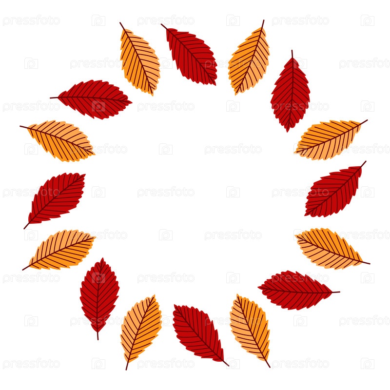 Круговая композиция осенних листьев в красных и оранжевых оттенках. идеально подходит для сезонных открыток, плакатов и приглашений
