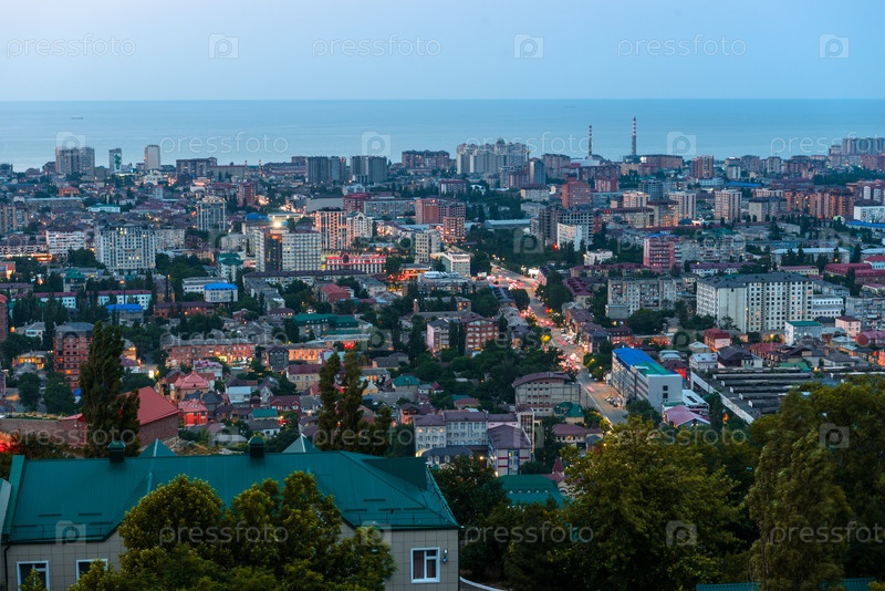 Вечерний вид на прибрежный город Махачкала с смотровой площадки горы Тарки-Тау
