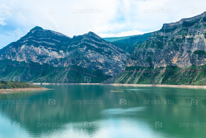 Живописный пейзаж с горным озером и слоистыми красивыми горами Северного Кавказа Дагестана Россия