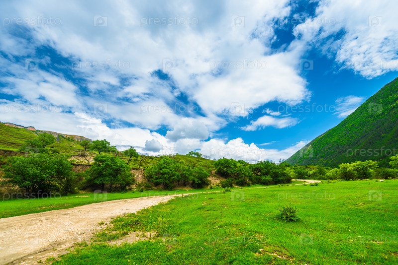 Красивый горный пейзаж с грунтовой дорогой.Дагестан, Кавказ