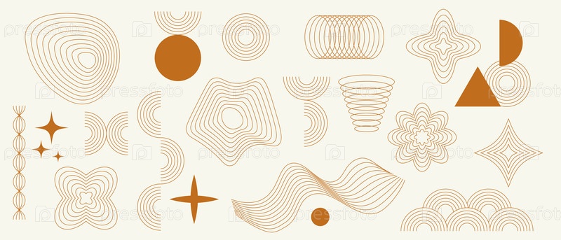 Набор элементов геометрических линий с вихрями, кругами и звездами в современной эстетике