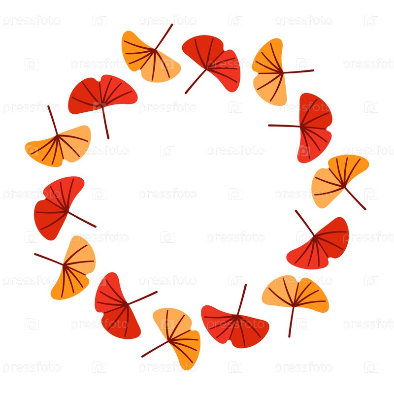 Венок, сформированный осенними листьями в теплых оттенках красного и желтого цвета идеально подходит для праздничных приглашений