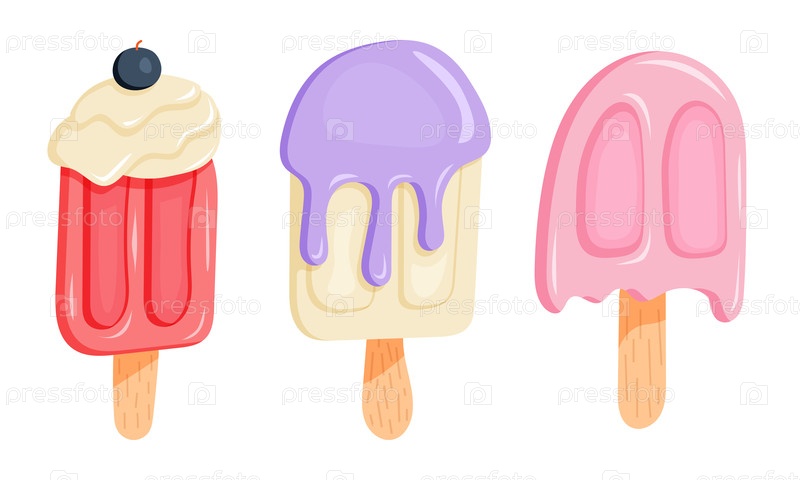 Мороженое с красными, фиолетовыми и розовыми морожеными угощениями на палочках