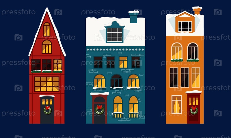 Зимние домики со снегом и рождественские украшения на домах отдыха