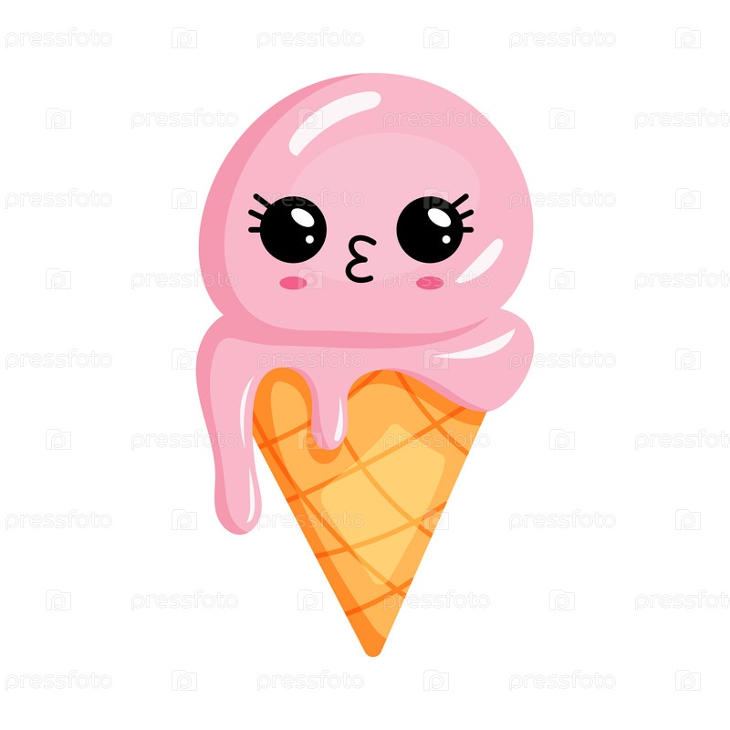 Очаровательный мультсериал мороженое в стиле кавайи с счастливым лицом. идеально подходит для детских дизайнов, упаковки продуктов питания и милых тематических проектов