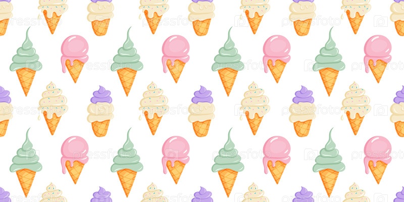 Игральный образец мороженого с различными вкусами в конусах вафли, идеально подходит для летних тематических дизайнов
