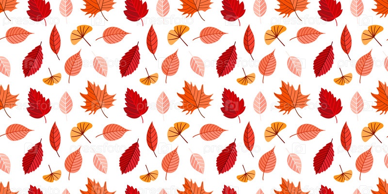 Бесшовный повторяющийся рисунок ручно нарисованных осенних листьев в теплых красных, оранжевых и желтых тонах. отлично подходит для текстиля, обоев, сезонного декора и упаковки
