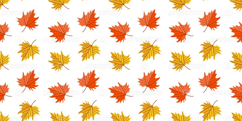 Ручно нарисованный бесшовный рисунок с красными и желтыми кленовыми листьями на белом фоне, идеально подходит для осенних дизайнов