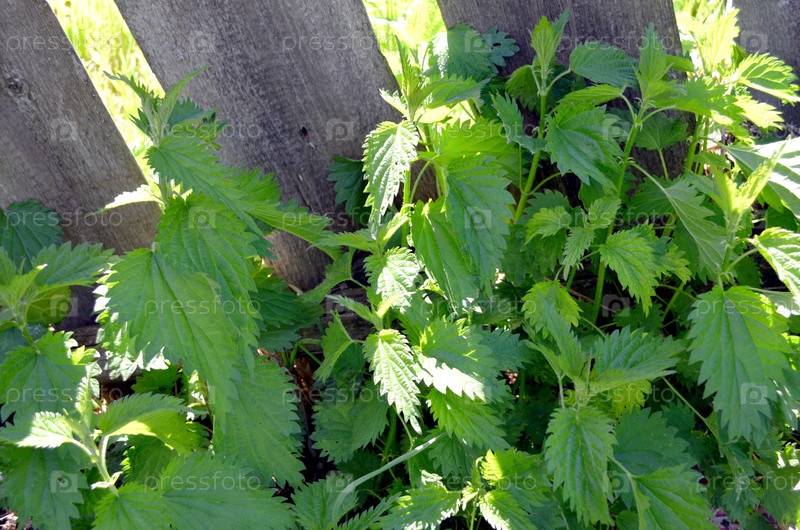 Кустарники крапивы под забором