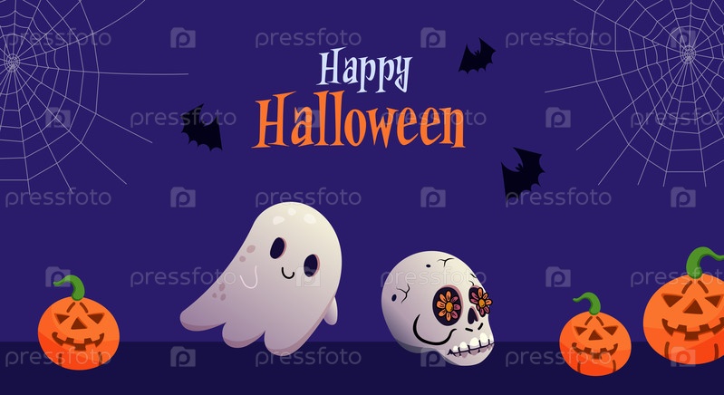Happy Halloween баннер с жуткими элементами