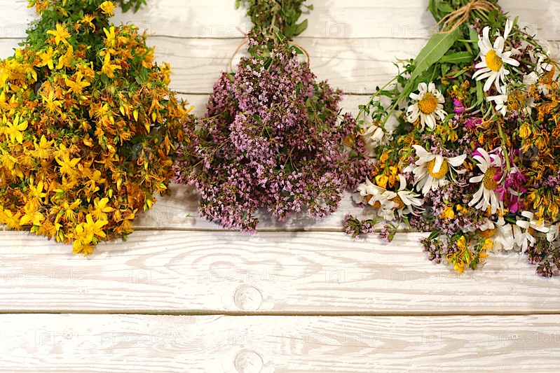 Букеты с лекарственными травами, концепция альтернативной традиционной медицины, реклама зеленой аптеки, сбор полезных трав для лечения по народным рецептам