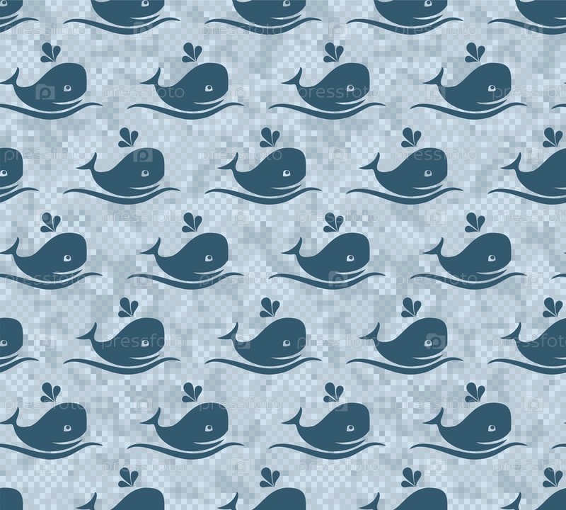 Бесшовный фон с китами в море