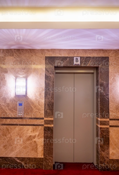 Современный коридор лифта с закрытыми дверями