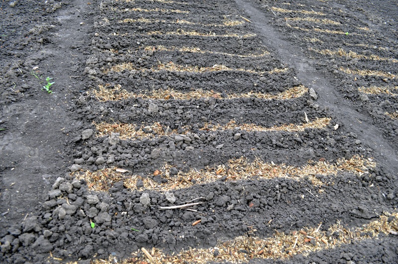 Посев в деревне. урожаи моркови и свеклы, покрытые пиломатериалом для сохранения влаги