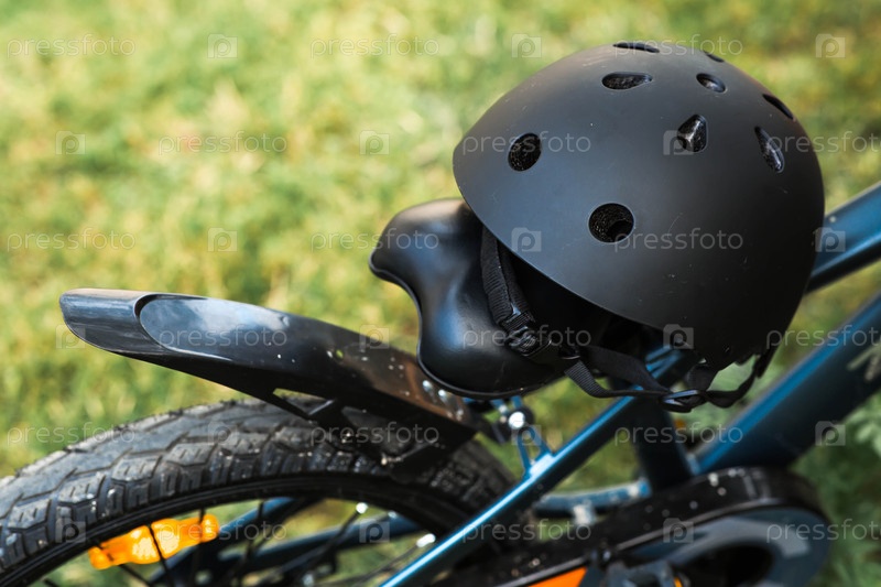 Велосипед и защитный шлем на открытом воздухе. Активные виды спорта. Защита. Страхование жизни и безопасность детей