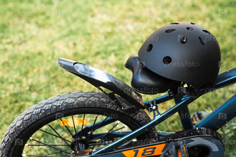 Велосипед и защитный шлем на открытом воздухе. Активные виды спорта. Защита. Страхование жизни и безопасность детей