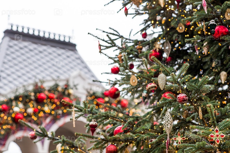 Волшебный рождественский фон. Концепция подготовки и дизайна нового года. Празднование игрушек на елке в Москве. Новогодняя открытка 2026