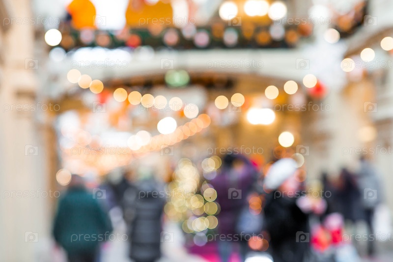 Абстрактный размытый рождественский фон с гирляндами на елке в теплых оттенках