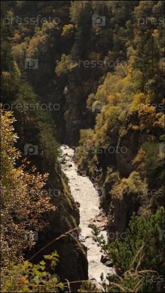 Природа в путешествии, горная река среди деревьев и камней