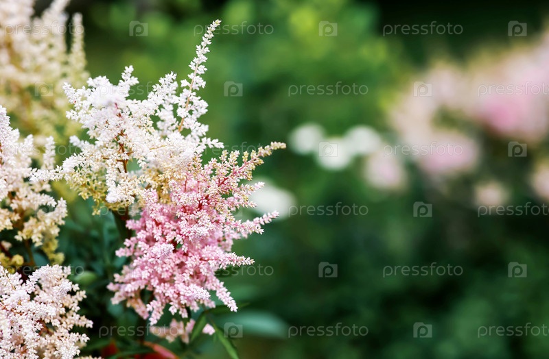 Астильба, или Астильбе (лат. Astilbe) — растение семейства Saxifragaceae. Розовый цветочный фон. Красивый, здоровый астильбе, цветущий в розовых тонах