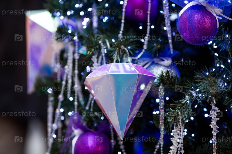 Новогодняя открытка для ювелирных салонов в 2026 году. Красивый рождественский фон. Алмазы и бриллианты на елке в Москве. Концепция подготовки к новому году