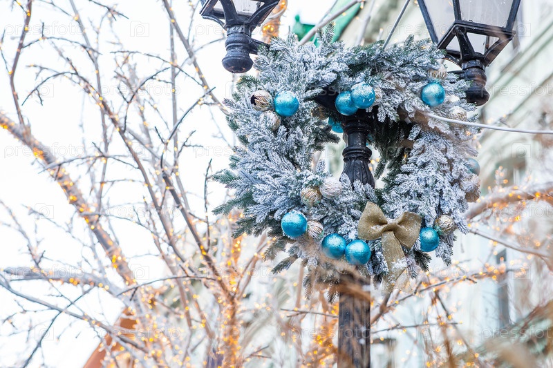Рождественский венок.Рождественские украшения во внутреннем интерьере.Концепция подготовки к Рождеству и Новому году 2026