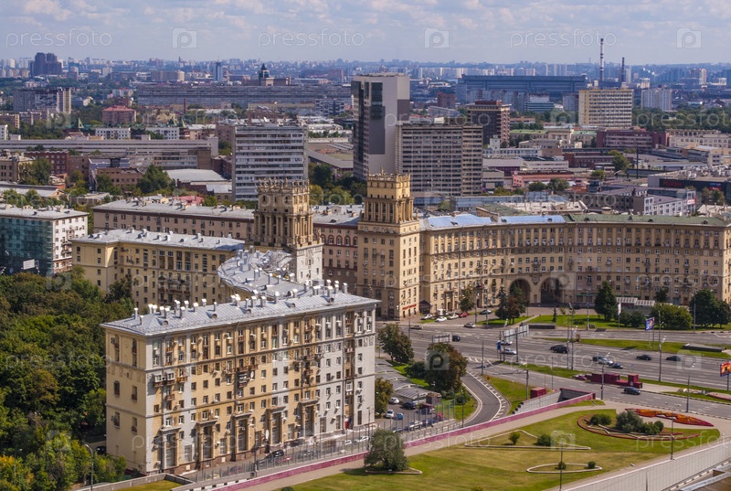 Вид на площадь Гагарина и Ленинский проспект с высоты птичьего полета