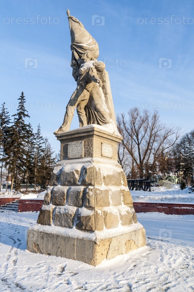 Центр города Омска. Памятник героям революции. Зима