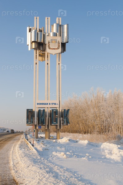 Омск.Стелла у бревна.Зима
