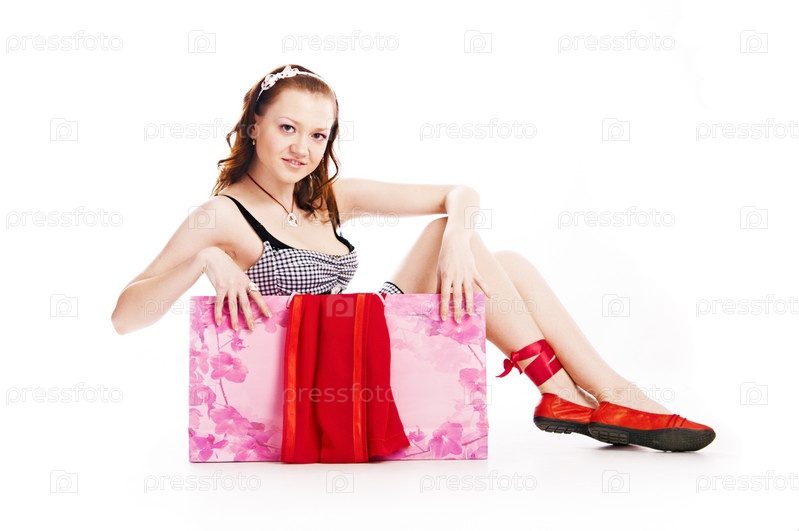 Женщина с сумкой на белом фоне