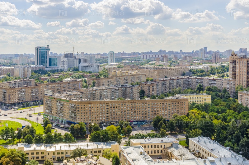 Вид на площадь Гагарина и Ленинский проспект с высоты птичьего полета