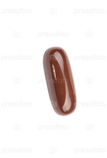 Одна коричневая желетиновая таблетка, выделенная на белом фоне