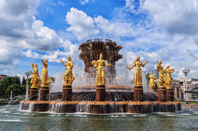 Москва, Россия - 10 июля 2025 года: Фонтан Дружбы народов в парке ВДНХ в Москве