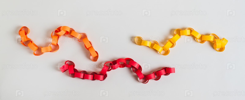 Три ручной работы цветные бумажные цепочки на светлом фоне