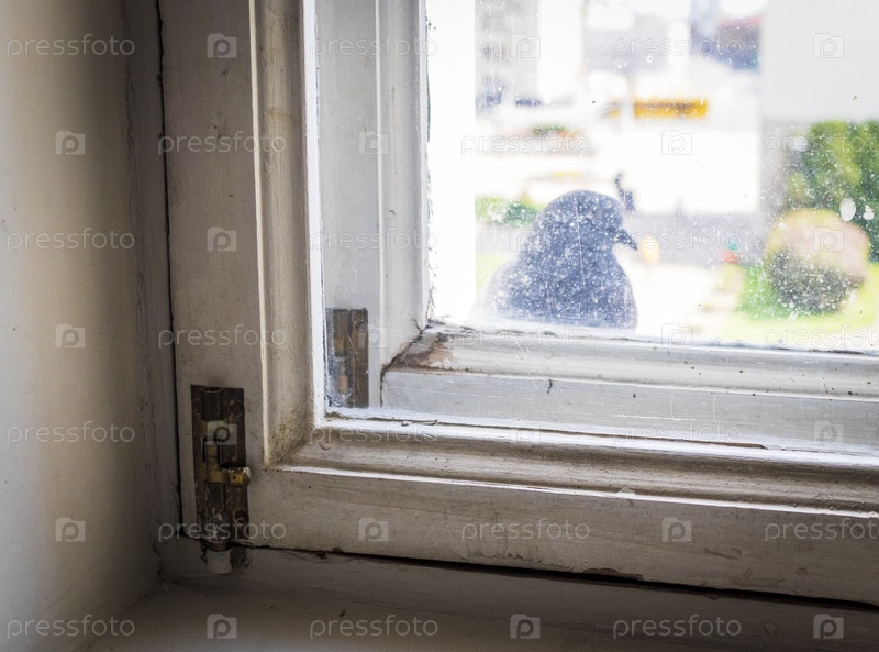 Картина голубя в грязном окне
