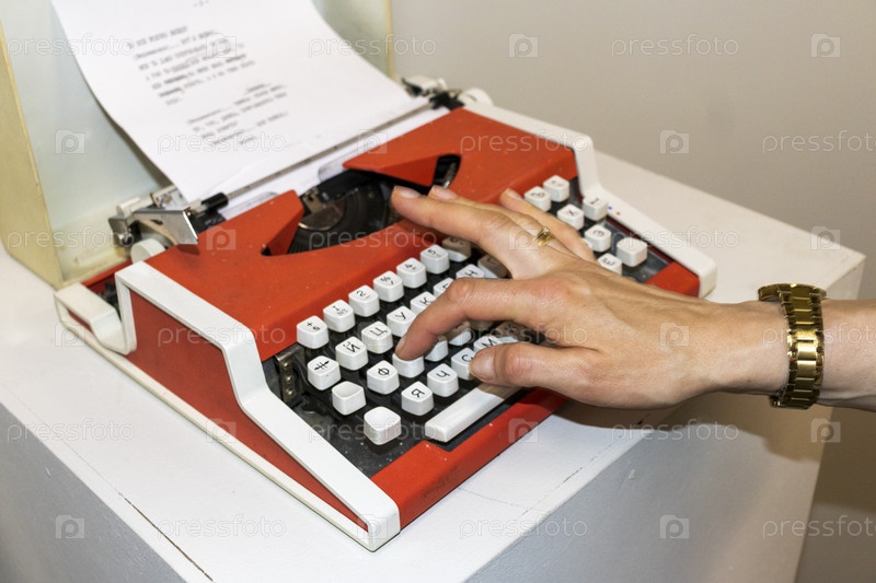 Женщина печатает на старой, винтажной русской пишущей машине