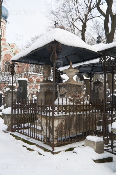 Старые кладбища Донского монастыря в зимний день