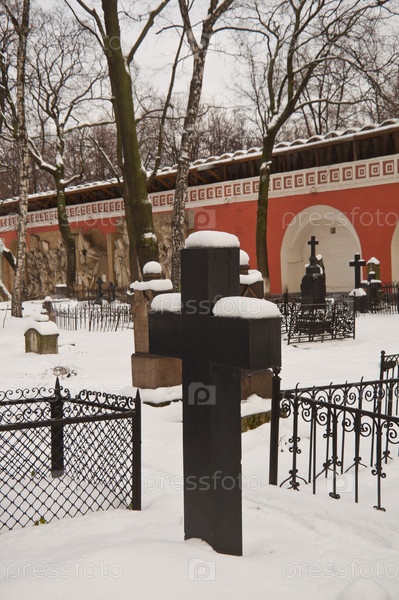 Старые кладбища Донского монастыря в зимний день