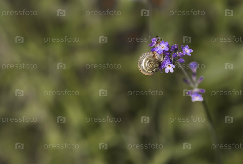 Виноградная улитка (Helix pomatia) на цветах сада. Садовый вредитель. Съедобная улитка. Наземный моллюск-гастропод семейства Helicidae