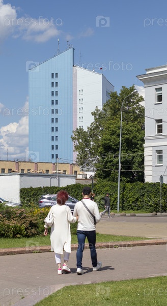 07.07.2025 - Минск, Беларусь - одно из жилых зданий в центре города. снаружи