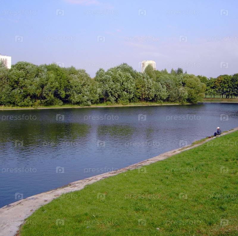 Мужчина рыбачит возле пруда в Москве