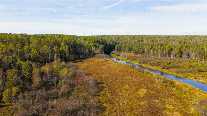 Бажуково, Россия. Каменная дыра или пьяный конь. Осенний пейзаж. Река Серга. Оленьи ручьи. Природный парк в лесистой местности, известной богатой флорой, вид с воздуха