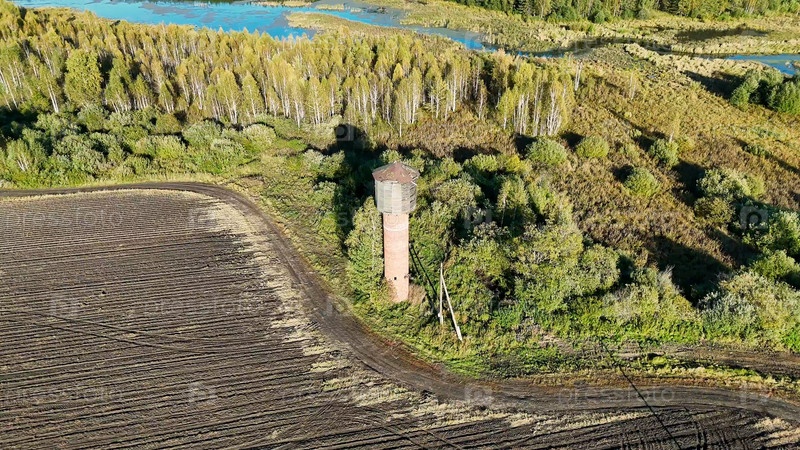 Екатеринбург, Россия.Старая водяная башня на краю поля.Сегодня вечером.Ранняя осень. мастер Фотографии - Дрони - Круг (далеко), Вид с воздуха